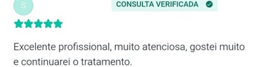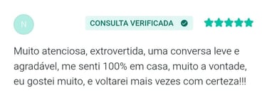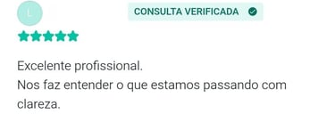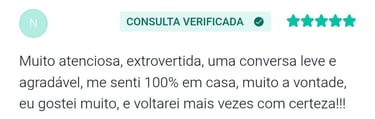 "Sinto que encontrei uma profissional excelente, muito acolhedora e me fez refletir muitas coisas que eu não havia percebido. Estou saindo das sessões com mais equilíbrio emocional e com a autoestima mais alta"